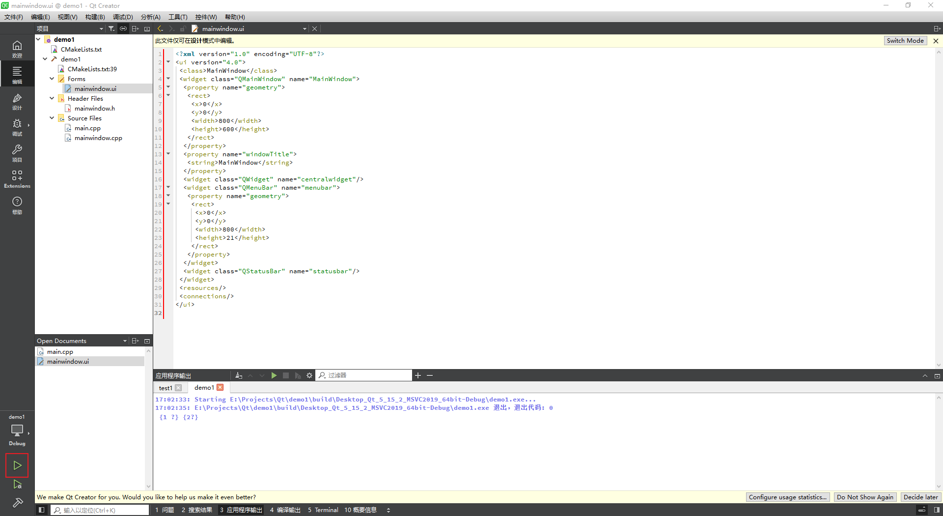 mainwindow.ui: 窗口布局文件,可图形化拖动