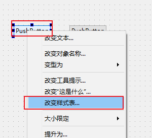 这里拖动了两个按钮过来,右键其中一个按钮,选择改变样式表,